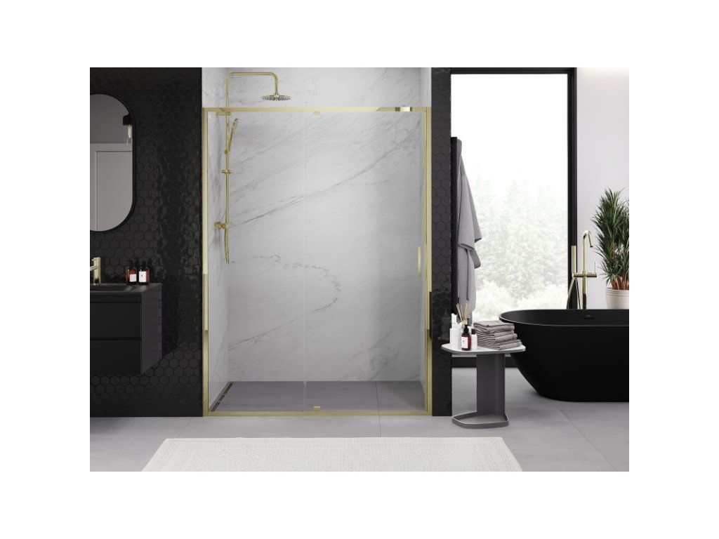 Mexen Exo výklopné sprchové dvere 135 cm, transparentné, zlaté - 819-135-000-50-00