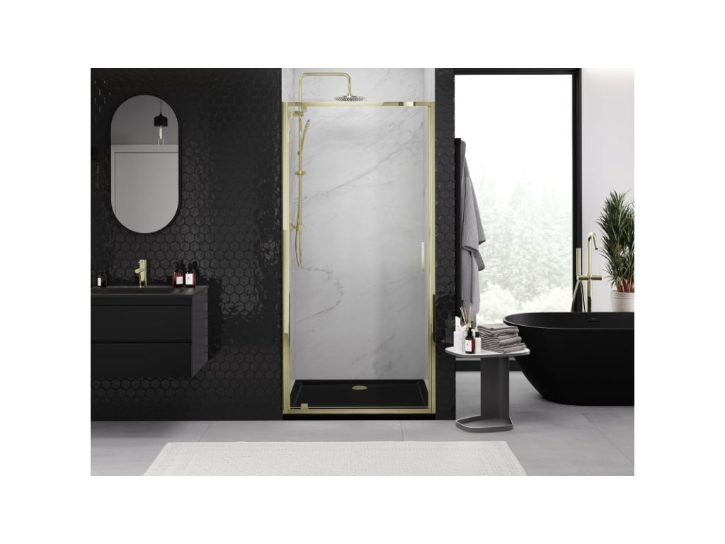 Mexen Exo výklopné sprchové dvere 60 cm, transparentné, zlaté - 8181-060-000-50-00