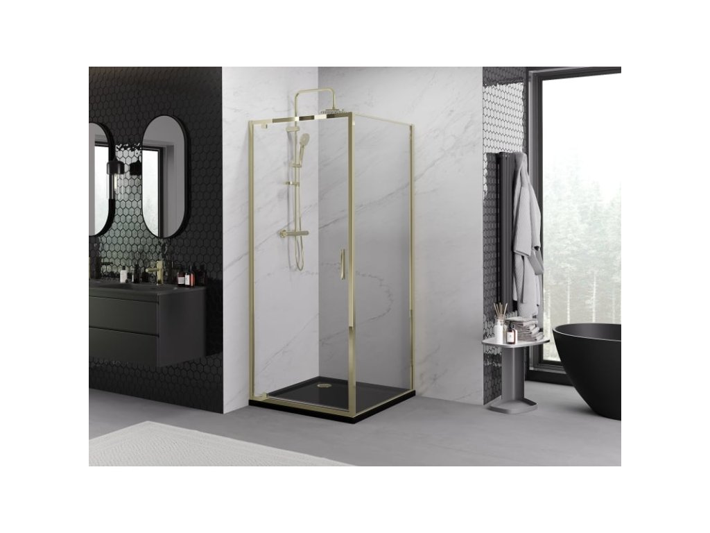 Mexen Exo výklopný sprchový kút 80 x 80 cm, transparentný, zlatý - 8181-080-080-50-00