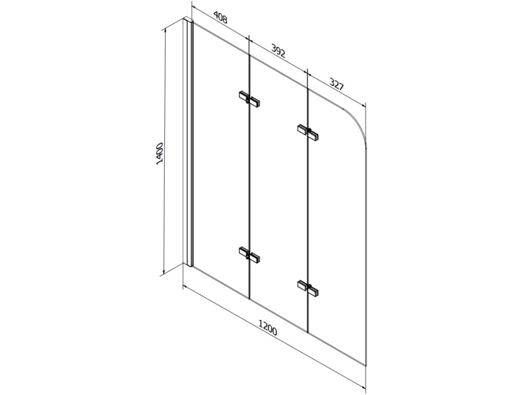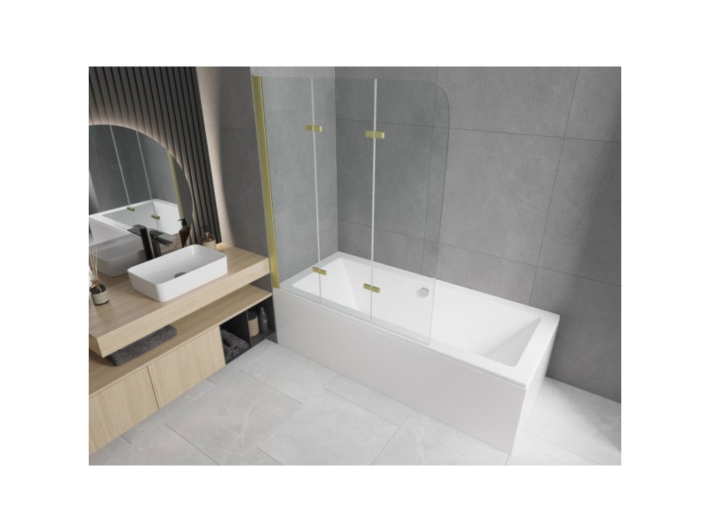 Mexen Felix vaňová zástena, 3-krídla 120 x 140 cm, priehľadné sklo, zlatá - 890-120-003-50-00