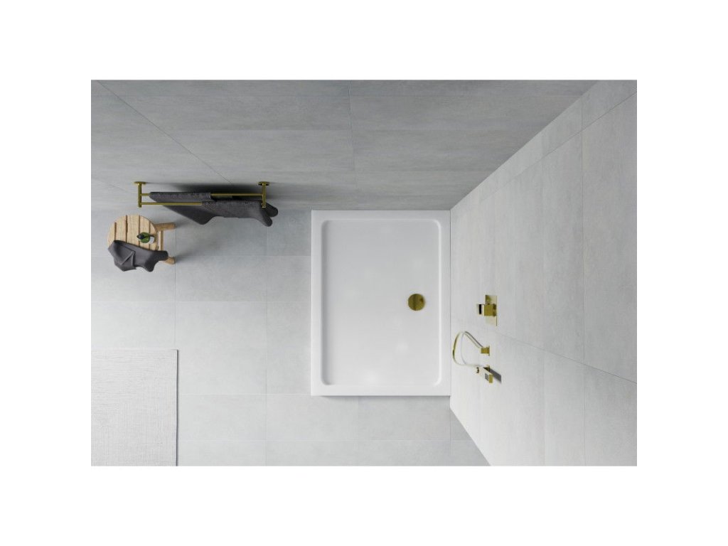 Mexen Flat sprchová vanička obdĺžniková slim 110 x 90 cm, biela, sifón zlatý - 40109011G