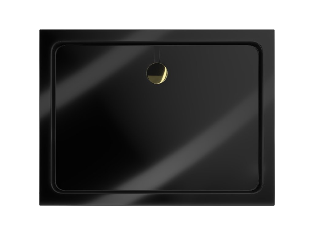 Mexen Flat sprchová vanička obdĺžniková slim 130 x 90 cm, čierna, sifón zlatý - 40709013G