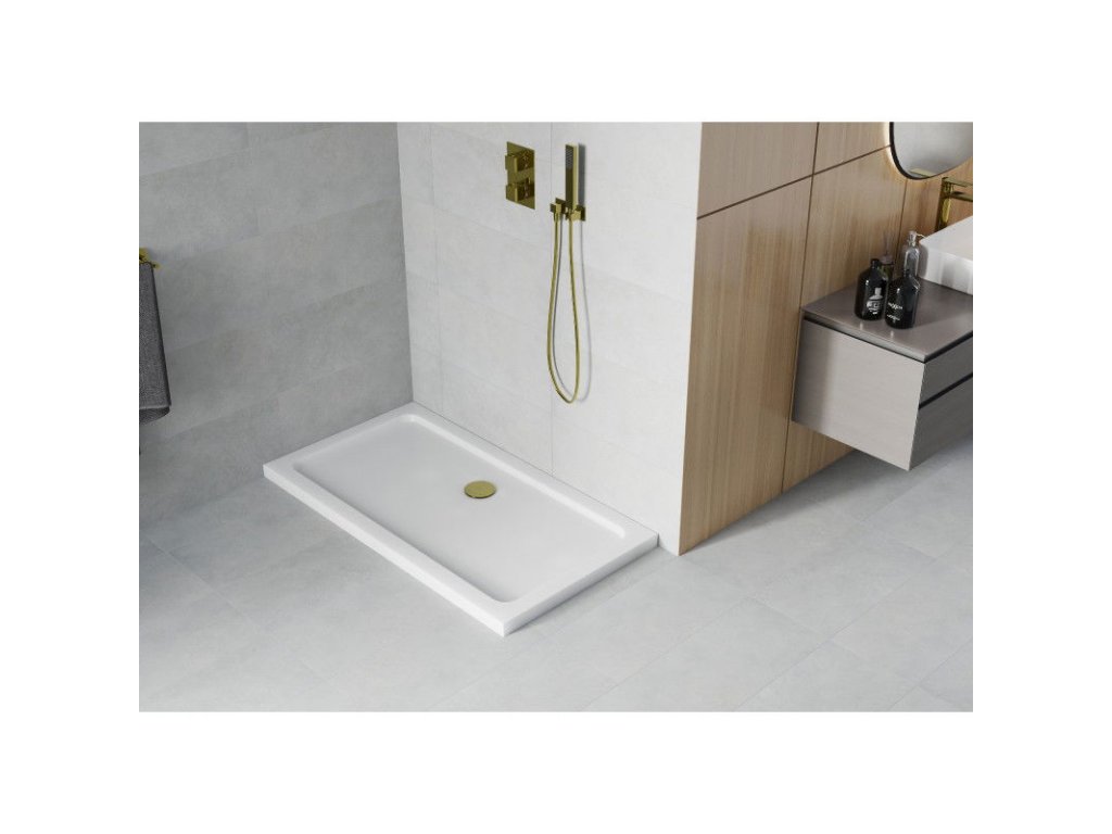 Mexen Flat sprchová vanička obdĺžniková slim 140 x 70 cm, biela, sifón zlatý - 40107014G