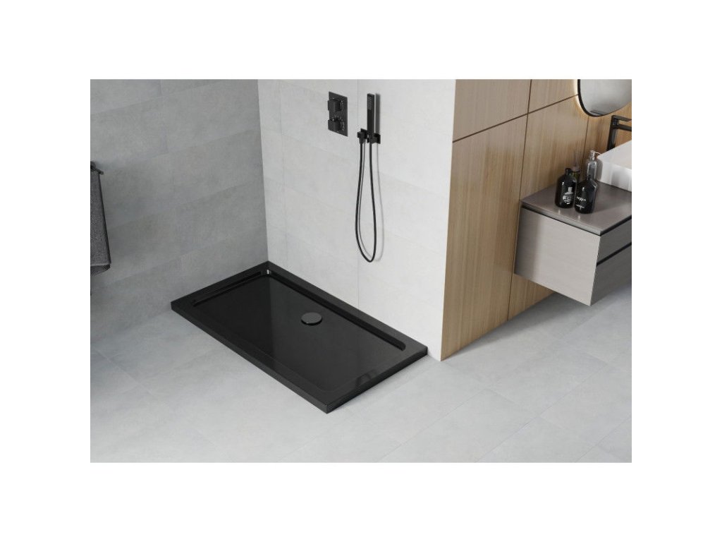 Mexen Flat sprchová vanička obdĺžniková slim 140 x 70 cm, čierna, sifón čierny - 40707014B