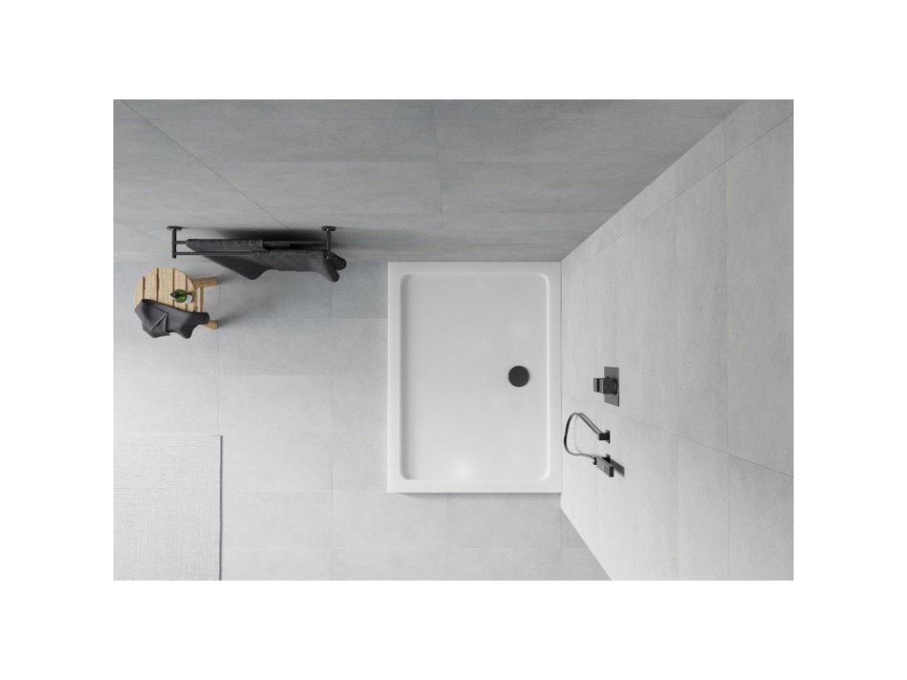 Mexen Flat sprchová vanička obdĺžniková slim 80 x 70 cm, biela, sifón čierny - 40107080B