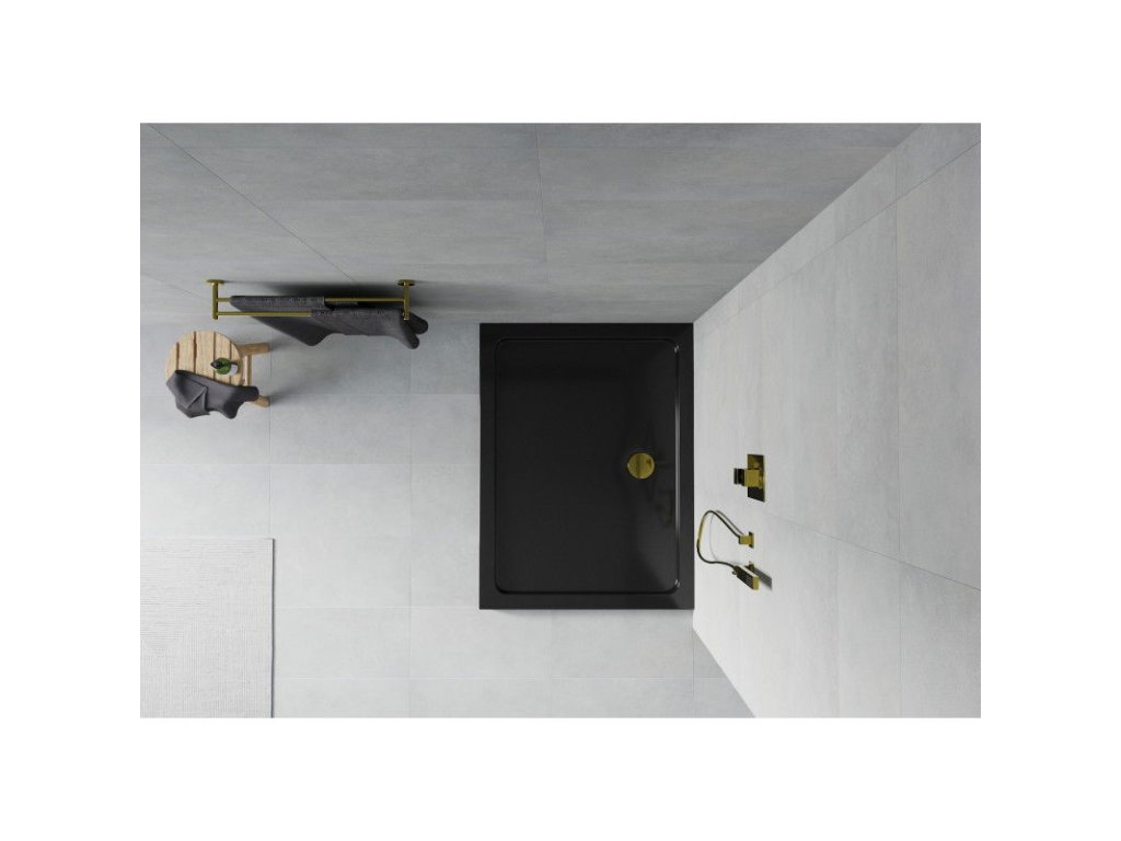 Mexen Flat sprchová vanička obdĺžniková slim 90 x 80 cm, čierna, sifón zlatý - 40708090G