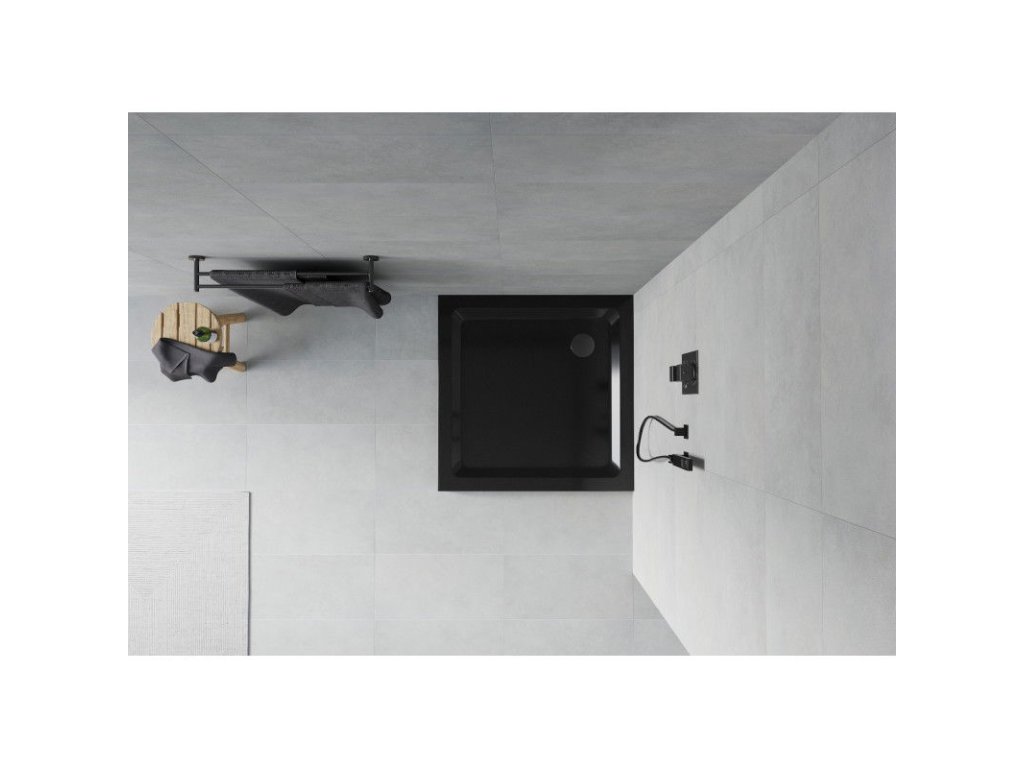 Mexen Flat sprchová vanička štvorcová slim 100 x 100 cm, čierna, sifón čierny - 40701010B