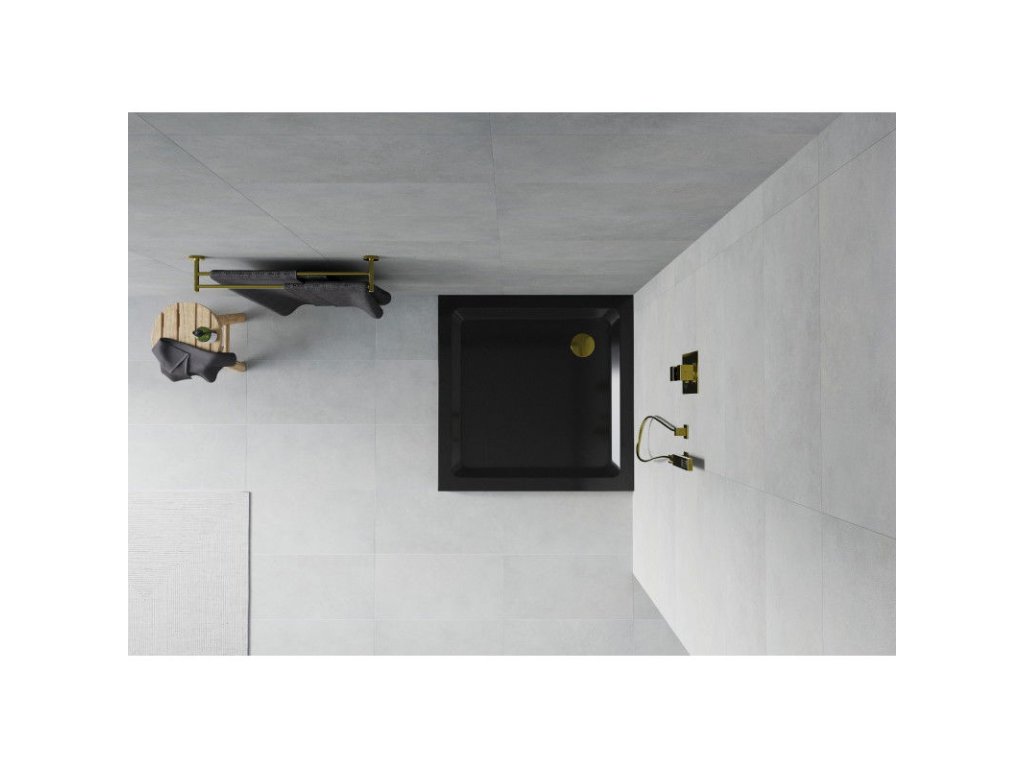 Mexen Flat sprchová vanička štvorcová slim 100 x 100 cm, čierna, sifón zlatý- 40701010G