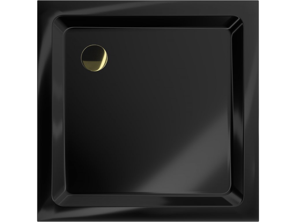 Mexen Flat sprchová vanička štvorcová slim 70 x 70 cm, čierna, sifón zlatý - 40707070G