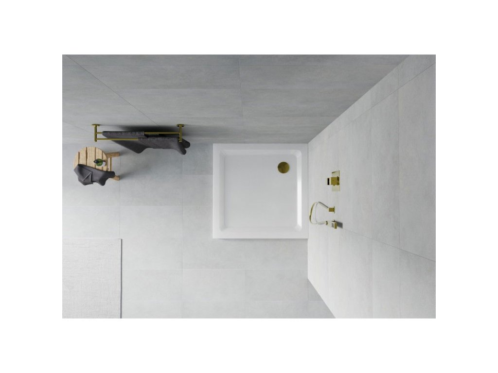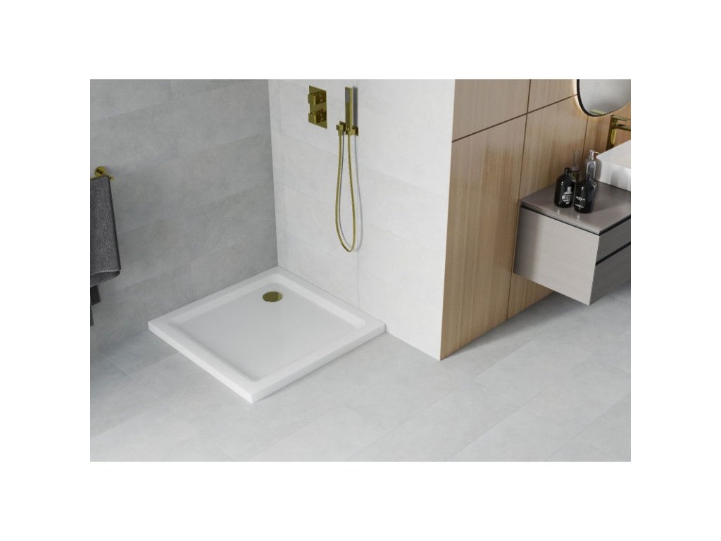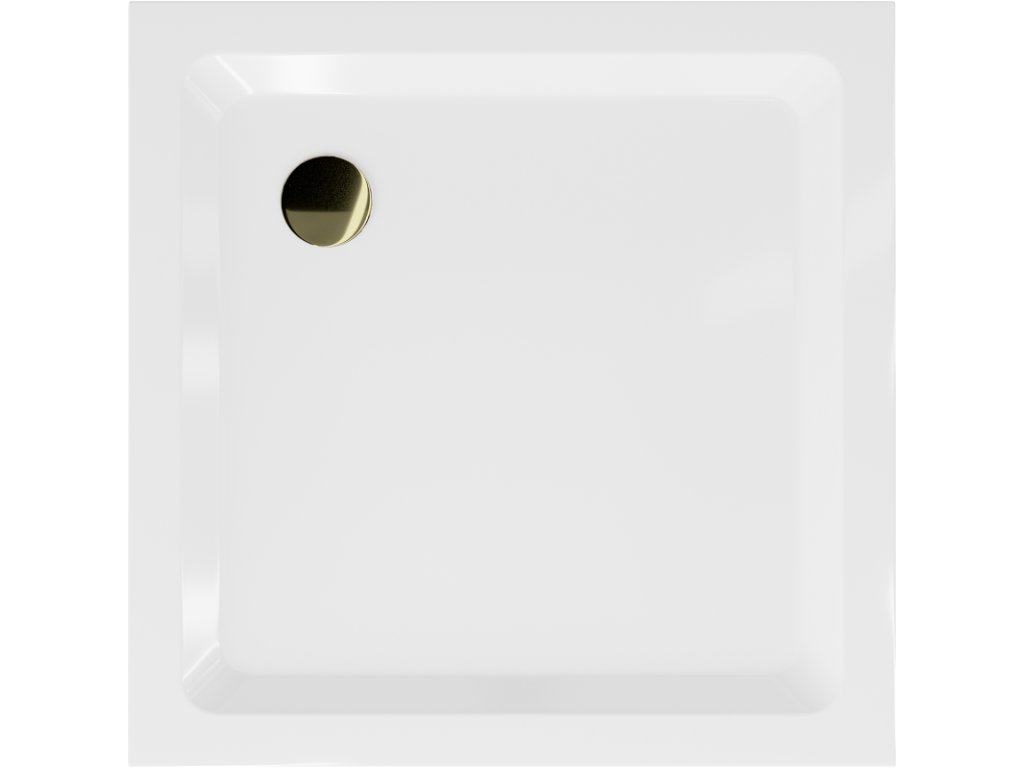 Mexen Flat sprchová vanička štvorcová slim 90 x 90 cm, biela, sifón zlatý - 40109090G