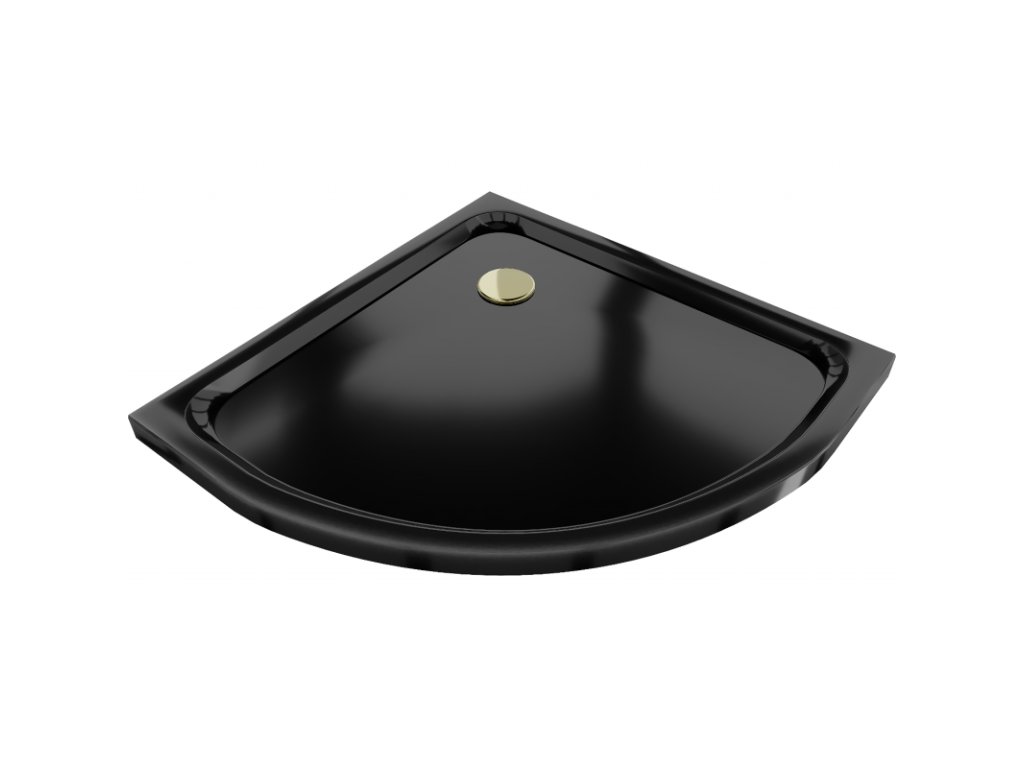 Mexen Flat sprchová vanička štvrťkruhová slim 100 x 100 cm, čierna, sifón zlatý - 41701010G
