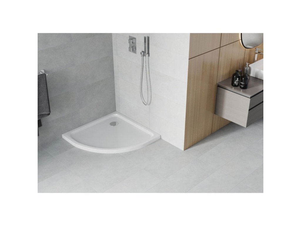 Mexen Flat sprchová vanička štvrťkruhová slim 70 x 70 cm, biela, sifón - 41107070