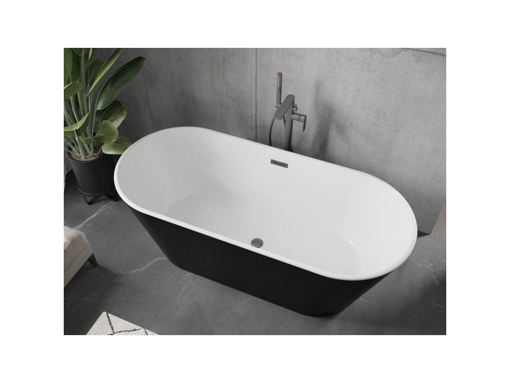 Mexen Flavia je elegantná voľne stojaca vaňa s rozmermi 160 x 75 cm, ktorá zaujme svojím moderným dizajnom v bielej a čiernej farbe s povrchovou úpravou gun metal. Je vyrobená zo sanitárneho akrylátu, ktorý zaručuje komfort pri používaní a vysokú odolnosť proti zmatneniu a UV žiareniu. Jej oválny tvar a lesklý povrch dodajú šarm každej kúpeľni. Vaňa sa ľahko inštaluje a dodáva sa so sifónom a zátkou click clack, takže je ideálnou voľbou do každého interiéru.Dodatočné parametre