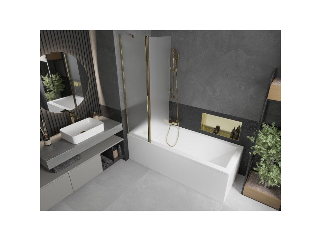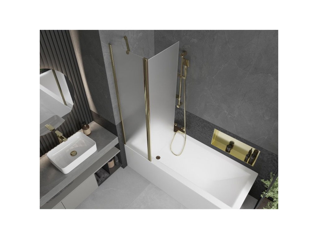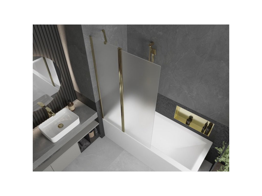 Mexen Flip 1-krídlová vaňová zástena 100 x 150 cm, matná, zlatá - 894-100-101-50-30