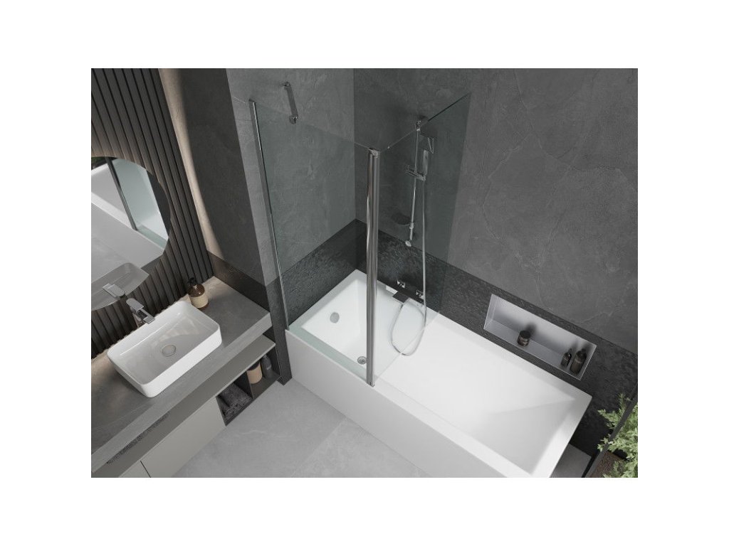 Mexen Flip 1-krídlová vaňová zástena 140 x 150 cm, transparentná, chróm - 894-140-101-01-00