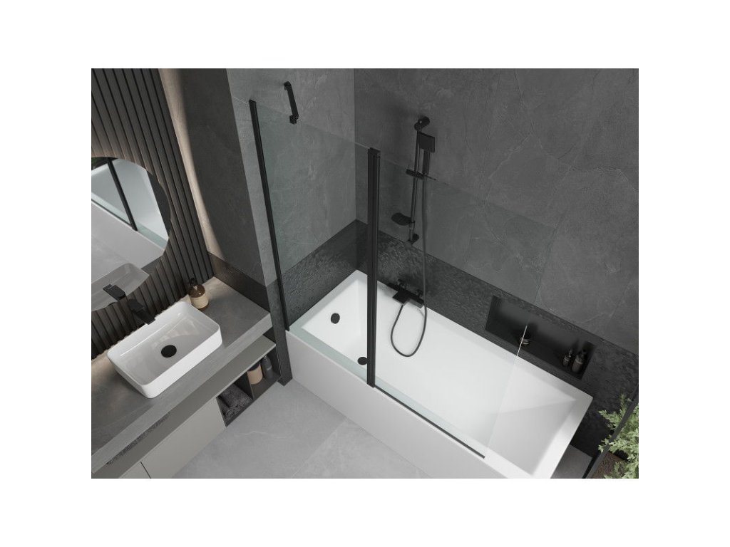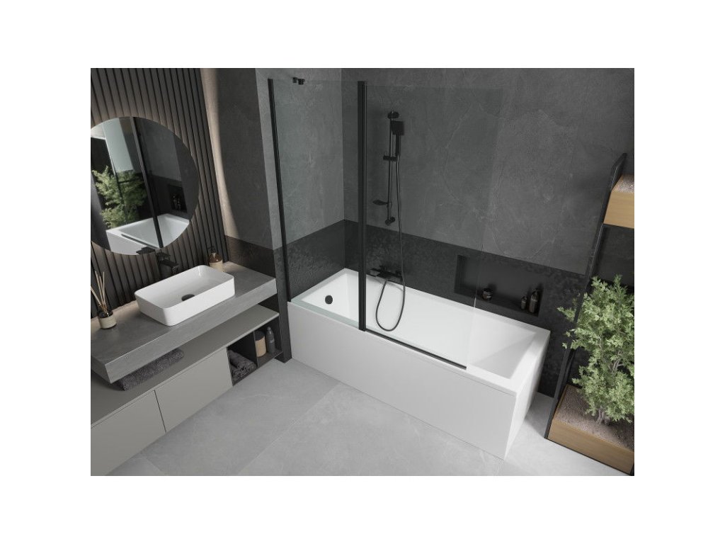 Mexen Flip 1-krídlová vaňová zástena 140 x 150 cm, transparentná, čierna - 894-140-101-70-00