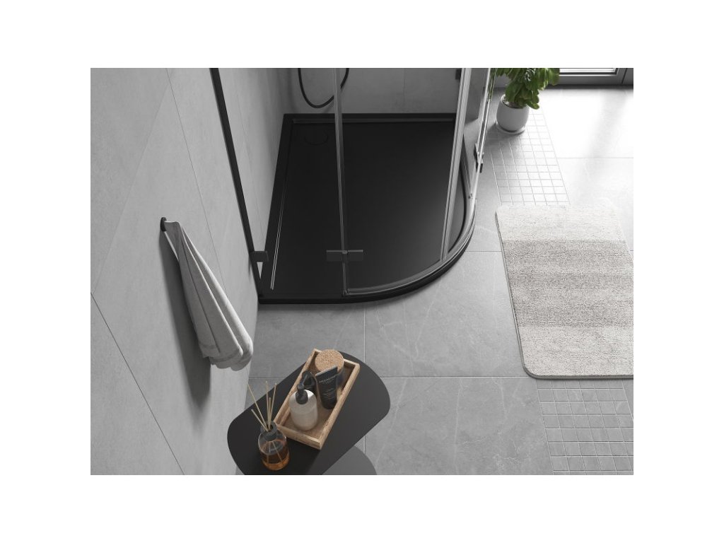 Mexen Flow asymetrická polkruhová sprchová vanička slim pravá 100 x 90 cm, čierna matná - 46Q709010R
