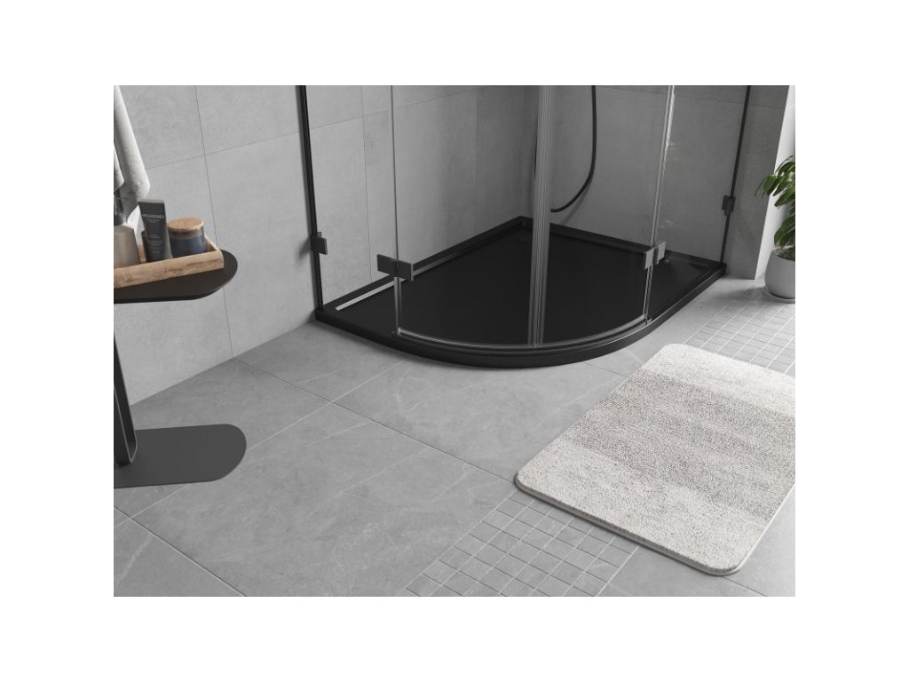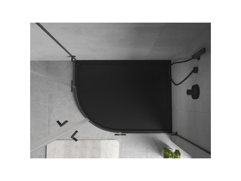 Mexen Flow asymetrická polkruhová sprchová vanička slim pravá 90 x 80 cm, čierna matná - 46Q708090R