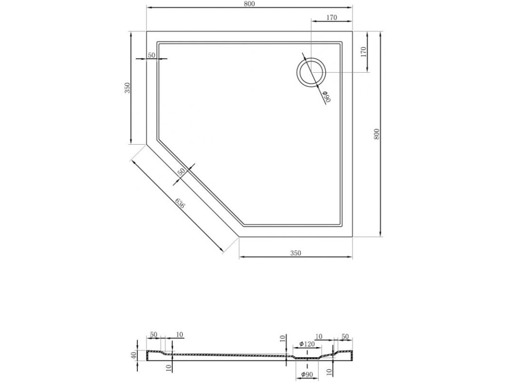 Mexen Flow päťuholníková sprchová vanička slim 80 x 80 cm, matná čierna - 46P708080