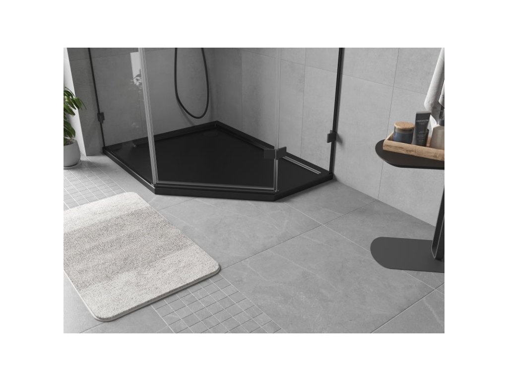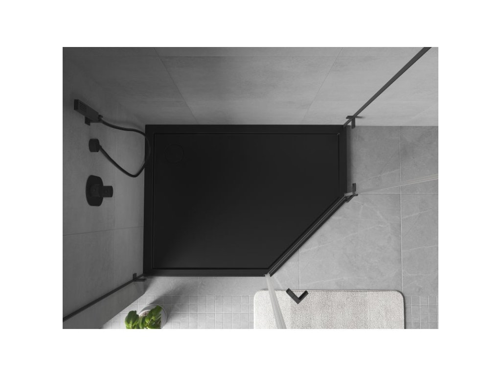 Mexen Flow päťuholníková sprchová vanička slim ľavá 100 x 90 cm, matná čierna - 46P709010L