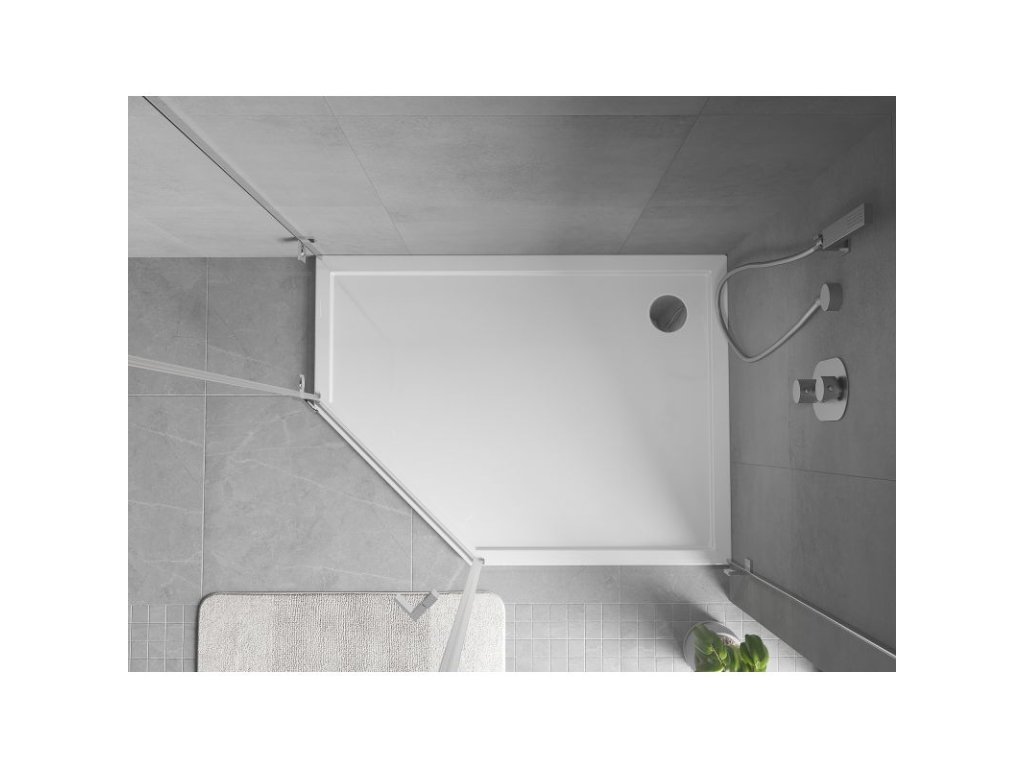 Mexen Flow pravostranná päťuholníková úzka sprchová vanička 100 x 80 cm, biely lesk - 46P108010R