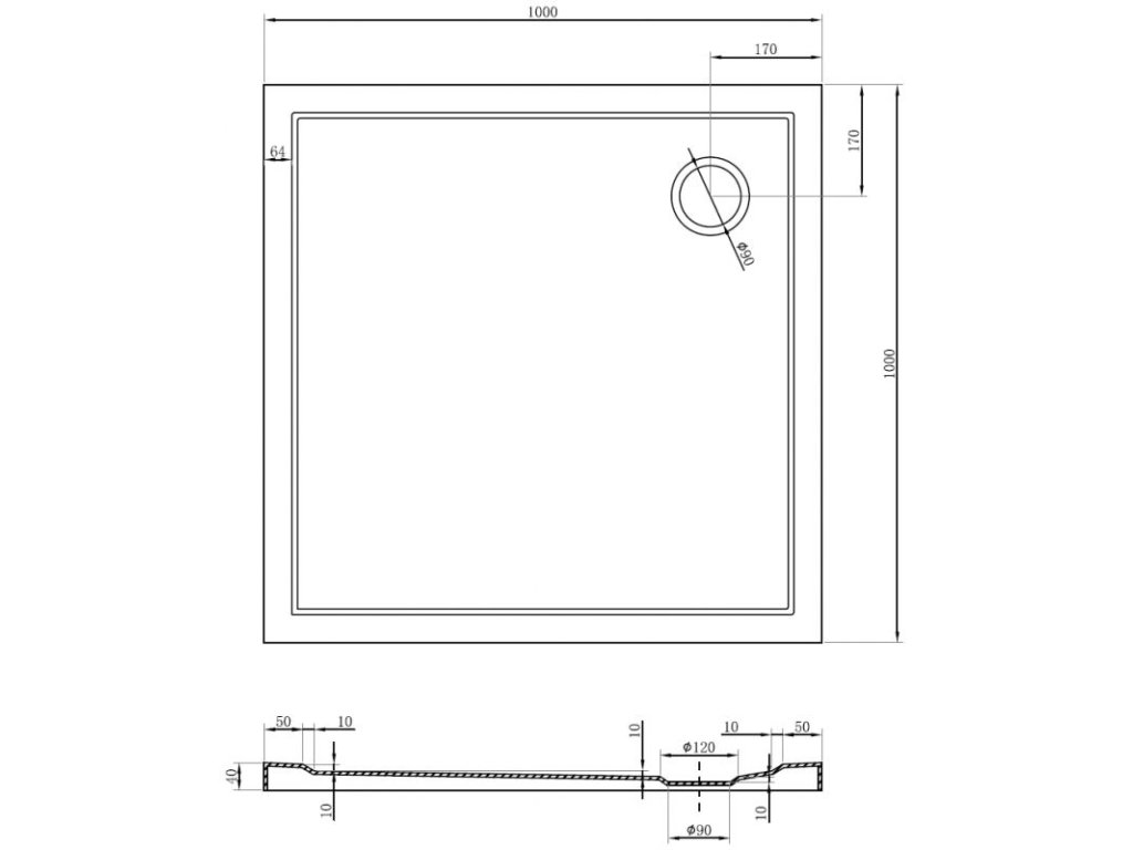 Mexen Flat sprchová vanička štvorcová slim 100 x 100 cm, biela, sifón čierny - 40101010B