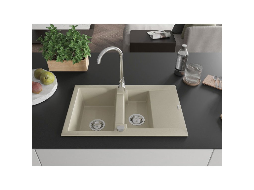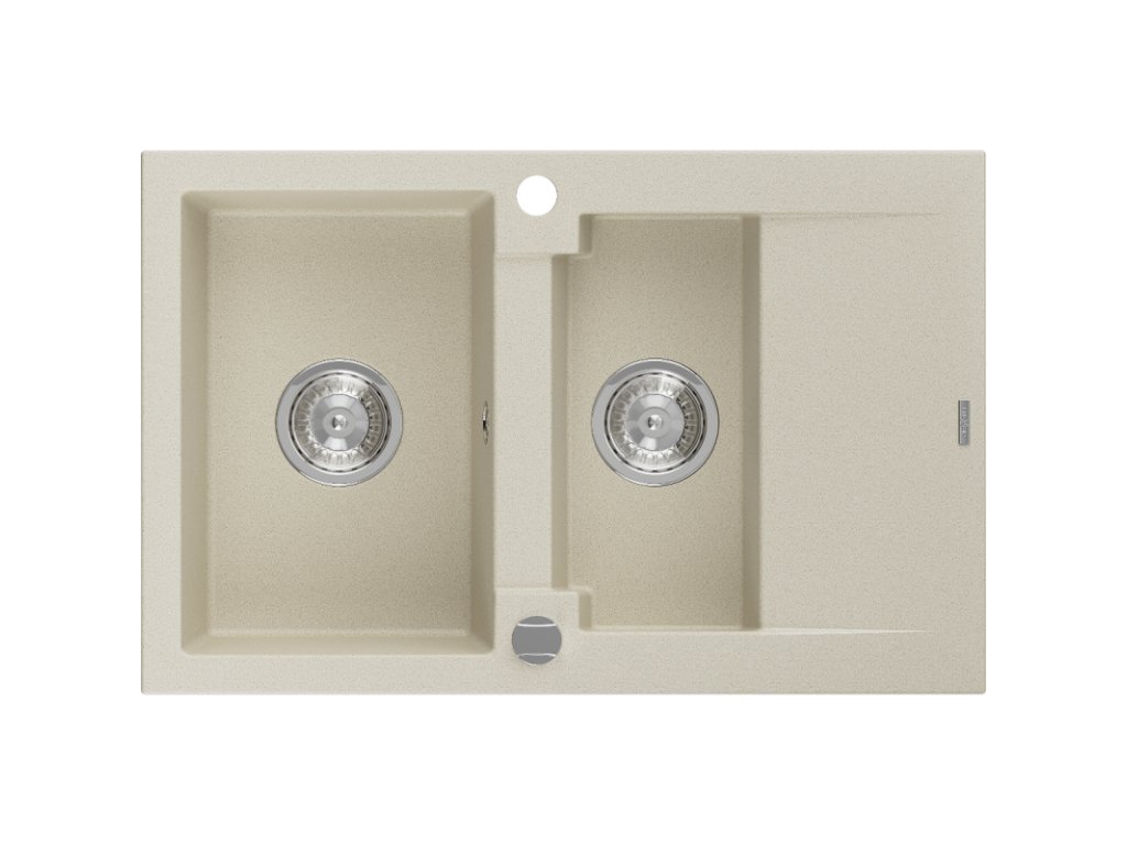 \n \n \nTechnické údaje: \n \nrozmery: 737x475x177 mm \n \nhĺbka komory: 167 mm (väčšia), 107 mm (menšia) \n \nrozmery komory: 395x272 mm (väčšia), 375x182 mm (menšia) \n \npriemer odtoku: ø90 mm \n \nModel: 1,5-komorový s krátkym odkvapkávačom \n \ntyp: zapustené do pracovnej dosky \n \nfarba: béžový \n \nmateriál: žula \n \nprepadový otvor: áno \n \notvor pre batériu: áno \n \nautomatický sifón v sade \n \nvysoká odolnosť proti poškriabaniu a zafarbeniu \n \nodolnosť proti tepelným šokom \n \npovrch pre ľahké čistenieDodatočné parametre