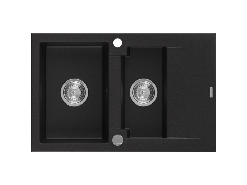 \n \n \nTechnické údaje: \n \nrozmery: 737x475x177 mm \n \nhĺbka komory: 167 mm (väčšia), 107 mm (menšia) \n \nrozmery komory: 395x272 mm (väčšia), 375x182 mm (menšia) \n \npriemer odtoku: ø90 mm \n \nModel: 1,5-komorový s krátkym odkvapkávačom \n \ntyp: zapustené do pracovnej dosky \n \nfarba: čierny \n \nmateriál: žula \n \nprepadový otvor: áno \n \notvor pre batériu: áno \n \nautomatický sifón v sade \n \nvysoká odolnosť proti poškriabaniu a zafarbeniu \n \nodolnosť proti tepelným šokom \n \npovrch pre ľahké čistenieDodatočné parametre