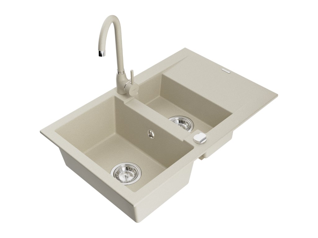 Mexen Gaspar drez granitový 1,5-komorový s odkvapkávačom + batéria Telma, béžový - 6507-69-670200-69