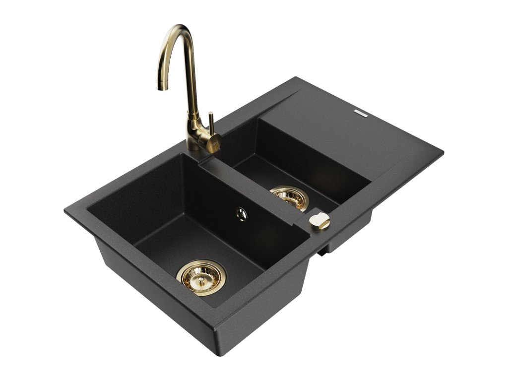 Mexen Gaspar drez granitový 1,5-komorový s odkvapkávačom + batéria Telma, čierny - 6507-77-670200-50