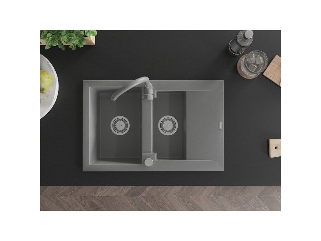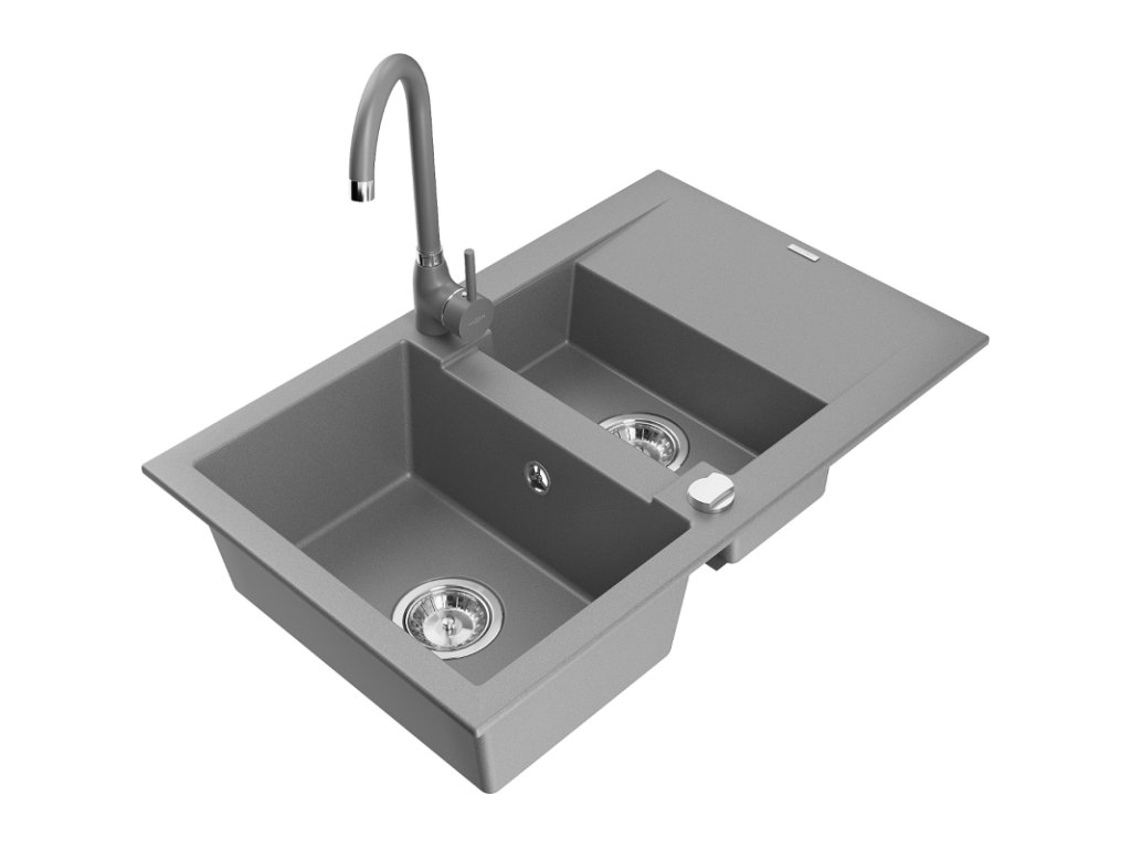 Mexen Gaspar drez granitový 1,5-komorový s odkvapkávačom + batéria Telma, šedý - 6507-71-670200-71