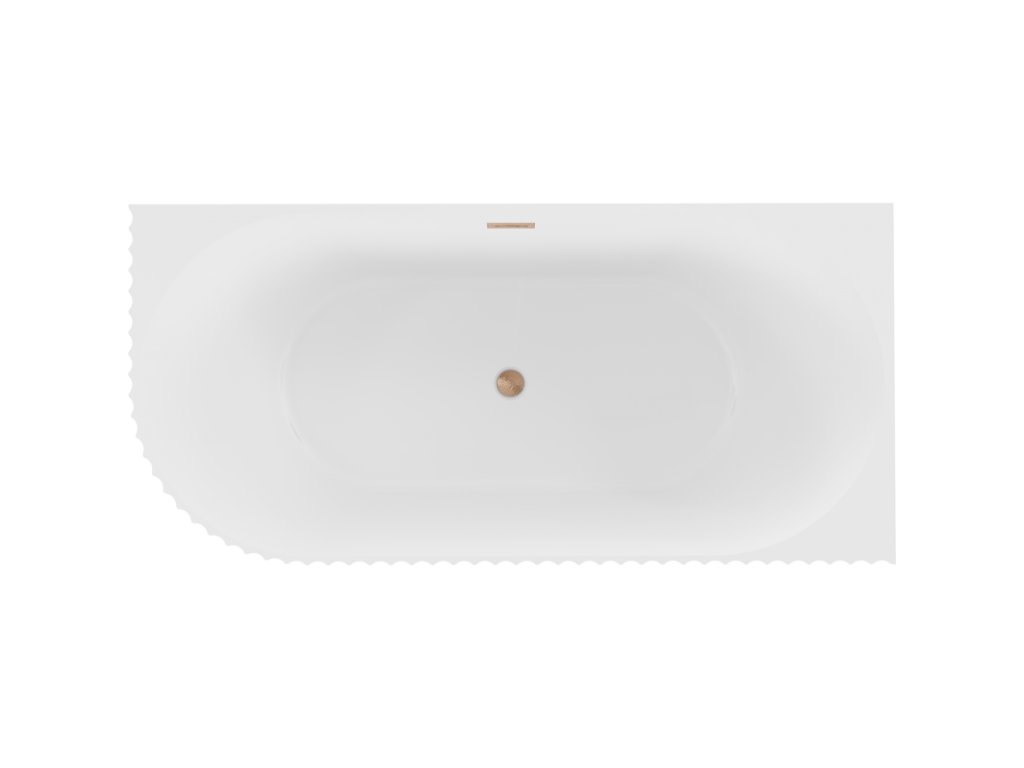 Mexen Gia voľne stojaca rohová vaňa s drážkou pravá 150 x 75 cm, biela matná, prepad z brúsenej medi - 52701507501P-65