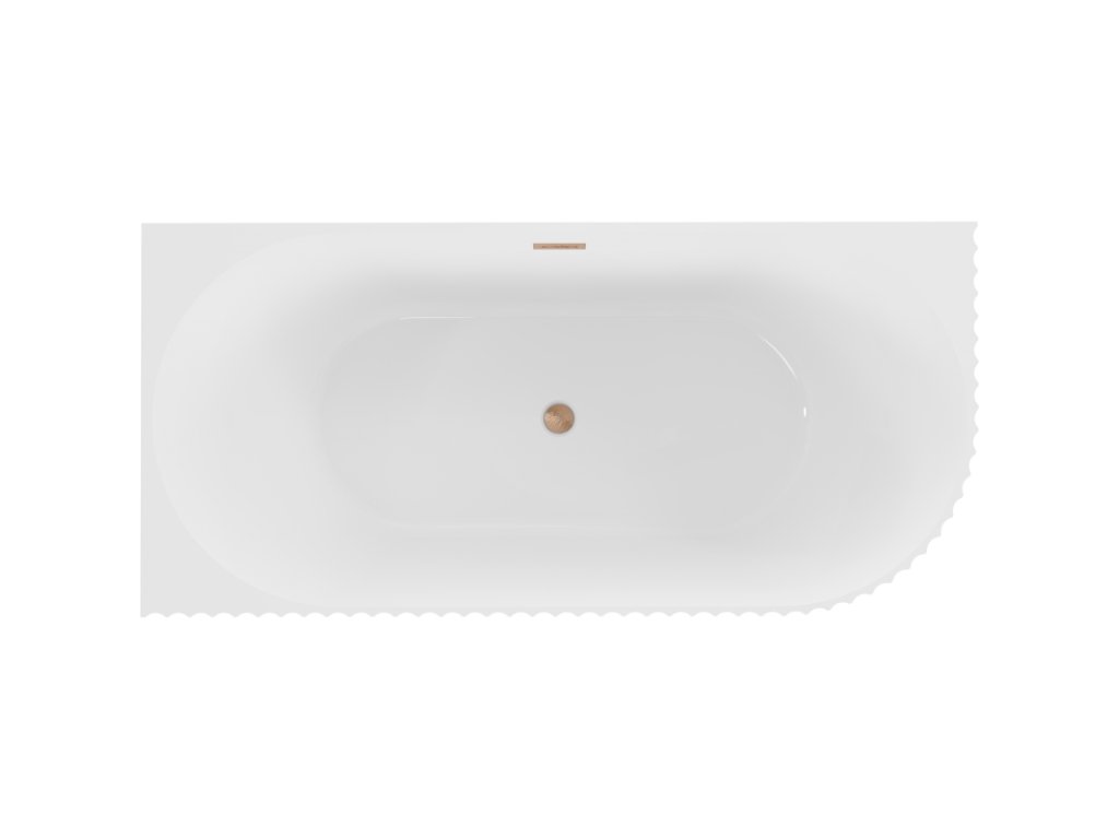 Mexen Gia voľne stojaca rohová vaňa s drážkou vpravo 150 x 75 cm, biely lesk, prepad z brúsenej medi - 52701507500P-65