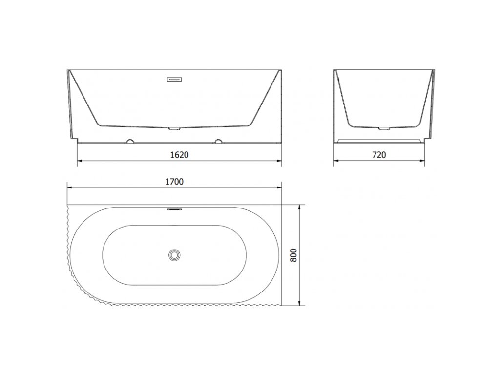 Mexen Gia voľne stojaca rohová vaňa s drážkou vpravo 170 x 80 cm, čierna matná, prepad z brúsenej medi - 52701708071P-65