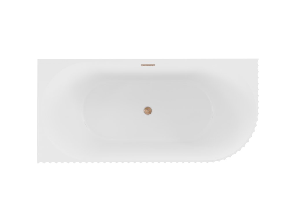 Mexen Gia voľne stojaca rohová vaňa s ľavým drážkovaním 150 x 75 cm, biela matná, prepad z brúsenej medi - 52701507501L-65
