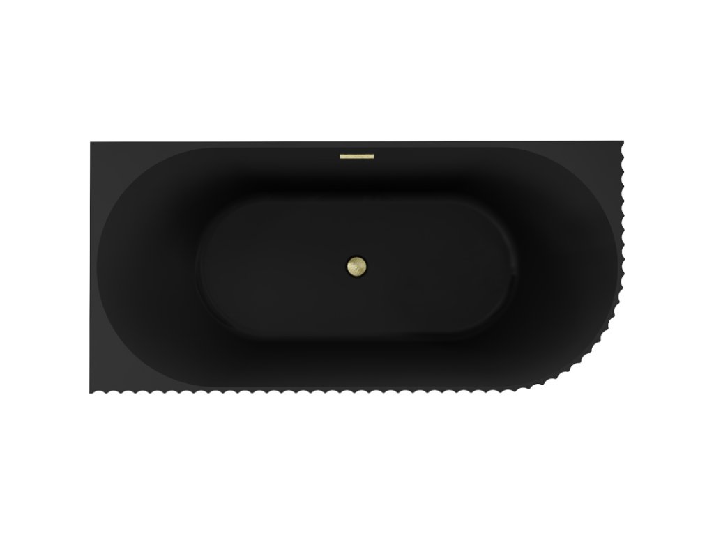 Mexen Gia voľne stojaca rohová vaňa s ľavým drážkovaním 150 x 75 cm, čierna matná, zlatý kartáčovaný prepad - 52701507571L-55