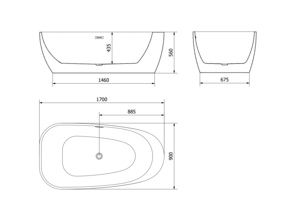 Mexen Giada voľne stojaca vaňa 170 x 90 cm, biely lesk, biely prepad - 52741709000-20
