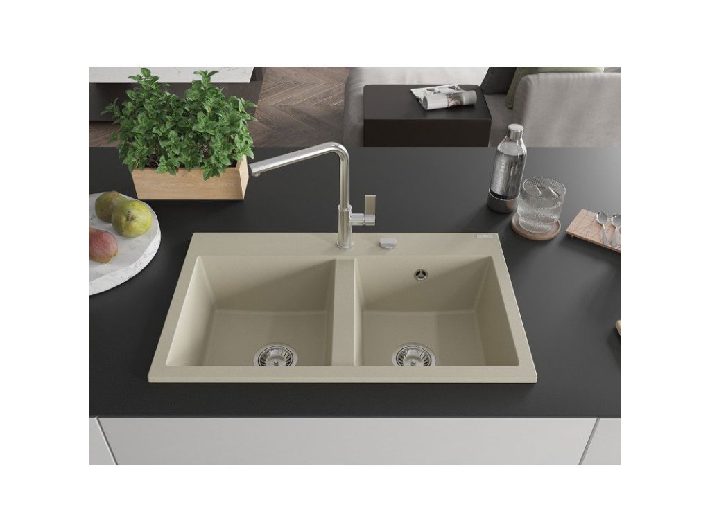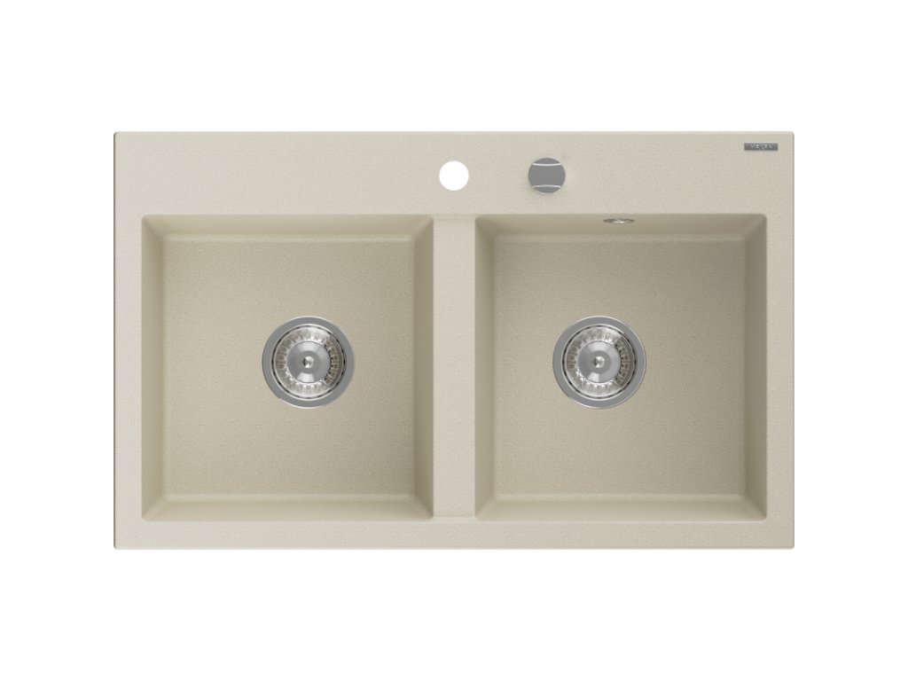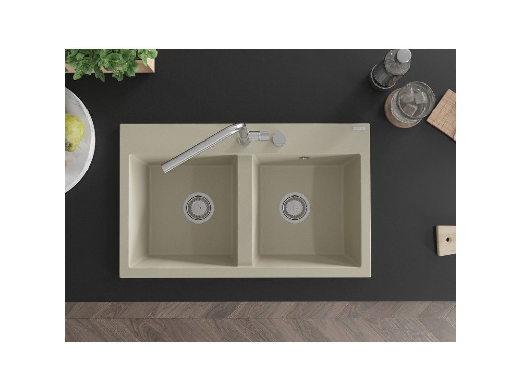 Mexen Hektor 2-komorový granitový drez 800 x 480 mm, béžový, chrómový sifón - 6521802000-69