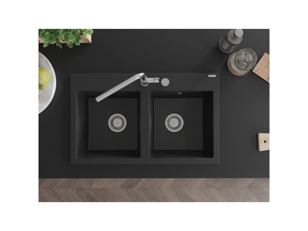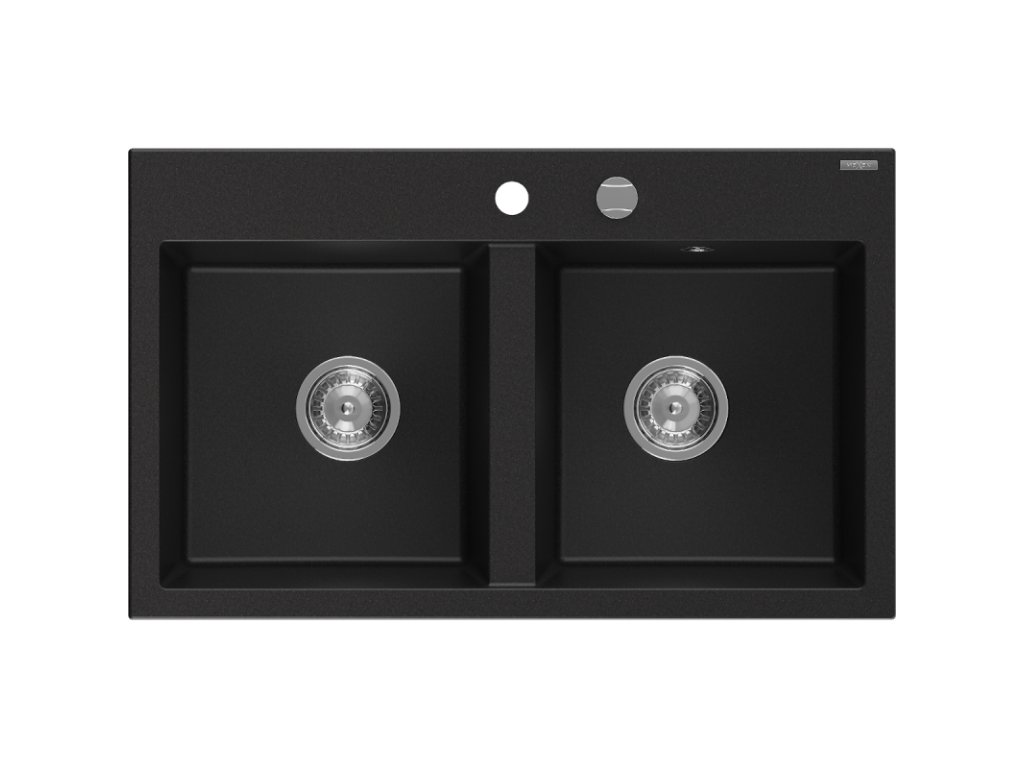 Mexen Hektor 2-komorový granitový drez 800 x 480 mm, čierny, chrómový sifón - 6521802000-77
