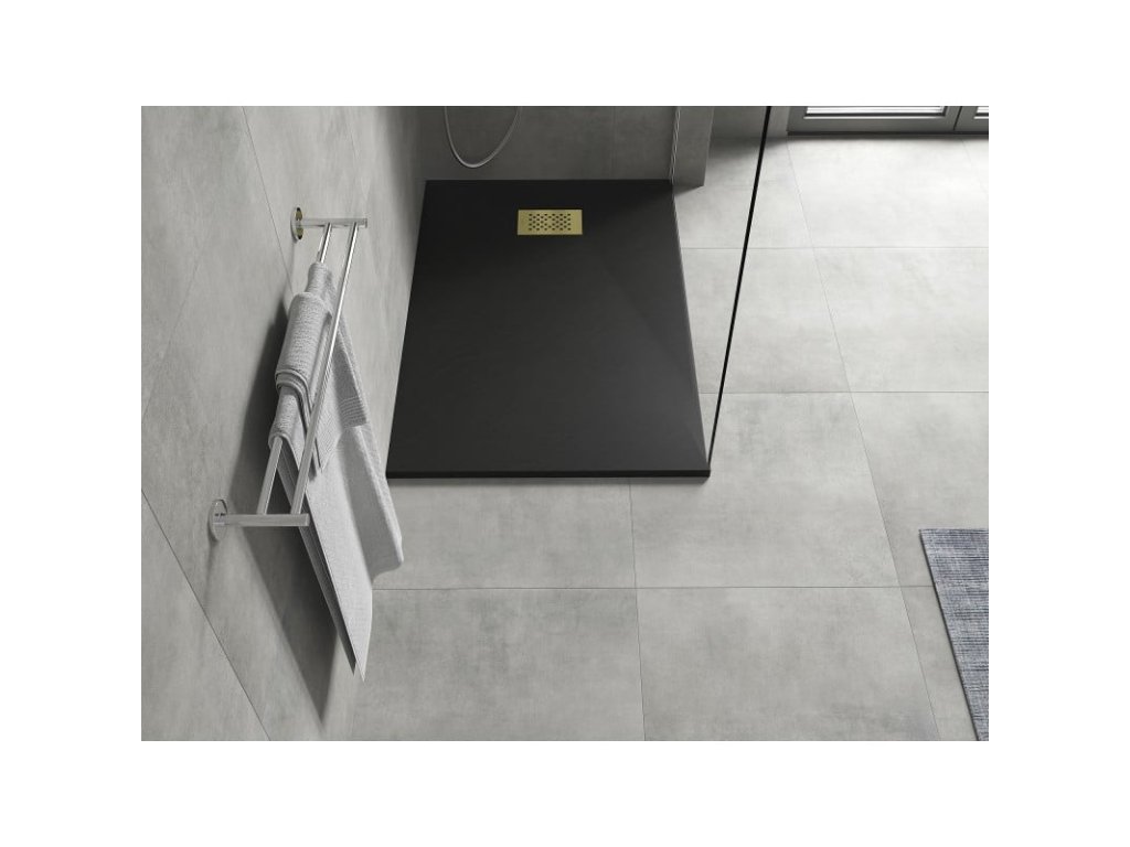Mexen Hugo obdĺžniková sprchová vanička SMC 100 x 70 cm, čierna, zlatá mriežka - 42707010-G