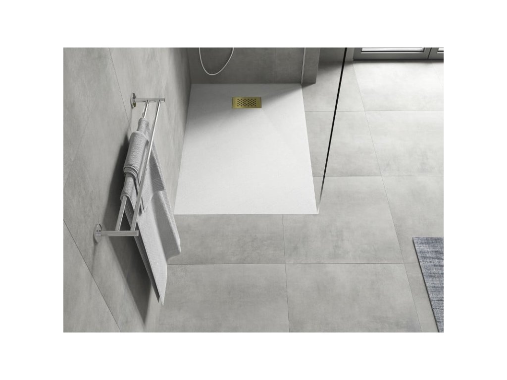Mexen Hugo obdĺžniková sprchová vanička SMC 100 x 80 cm, biela, zlatá mriežka - 42108010-G