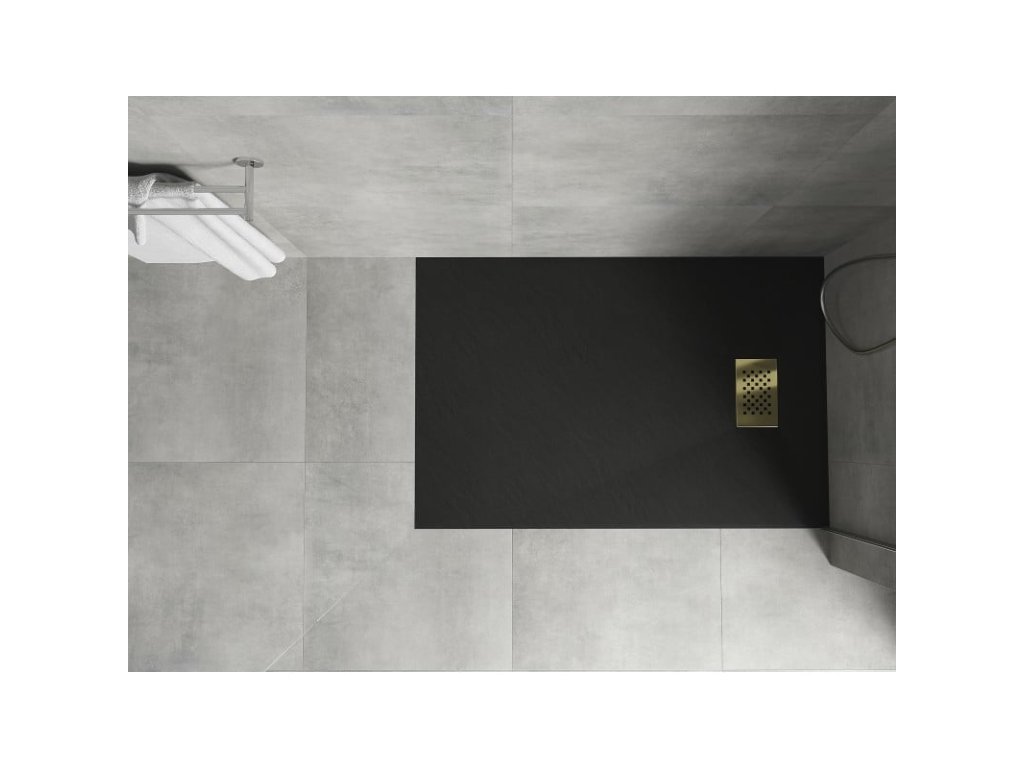 Mexen Hugo obdĺžniková sprchová vanička SMC 100 x 80 cm, čierna, zlatá mriežka - 42708010-G