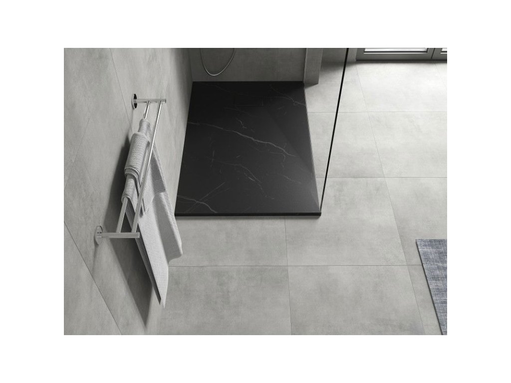 Mexen Hugo je moderná obdĺžniková sprchová vanička s rozmermi 100x80 cm, vyrobená z odolného materiálu SMC, ktorý je odolný voči deformácii a nárazom. Jej elegantná čierna farba a kamenná štruktúra dodajú štýl každej kúpeľni. Model je ultratenký, vďaka čomu sa ľahko inštaluje do podlahy alebo na podlahu. Dodáva sa so sifónom s priemerom výtoku 90 mm, ktorý zabezpečuje pohodlné používanie. Okrem toho je možné sprchovú vaničku prerezať, aby sa zvýšila jej funkčnosť.Dodatočné parametre