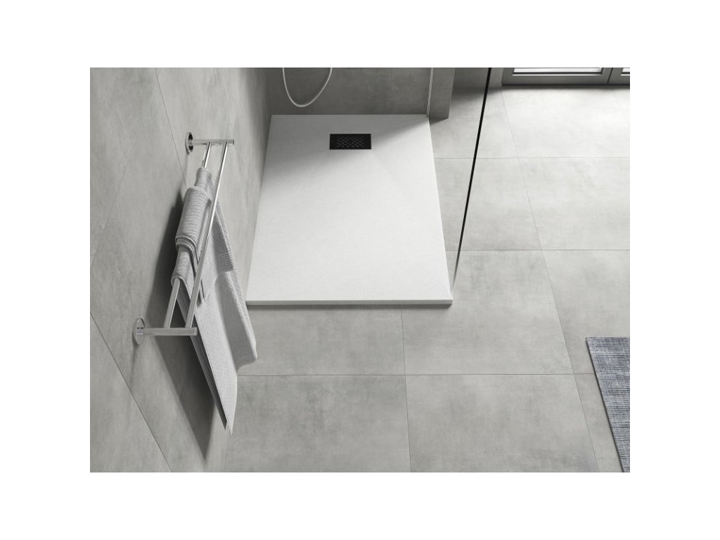 Obdĺžniková sprchová vanička SMC 130 x 80 cm je ideálnym riešením pre modernú kúpeľňu. Je vyrobená z odolného materiálu SMC a poskytuje maximálnu stabilitu a odolnosť voči nárazom. Vďaka svojej ultratenkej konštrukcii (výška len 2,6 cm) sa dá inštalovať do podlahy aj na podlahu. Má esteticky príjemný povrch s textúrou bieleho kameňa, ktorý zvyšuje atraktívnosť interiéru. Dodáva sa so sifónom s horným čistením a krycou doskou v elegantnej čiernej farbe.Dodatočné parametre