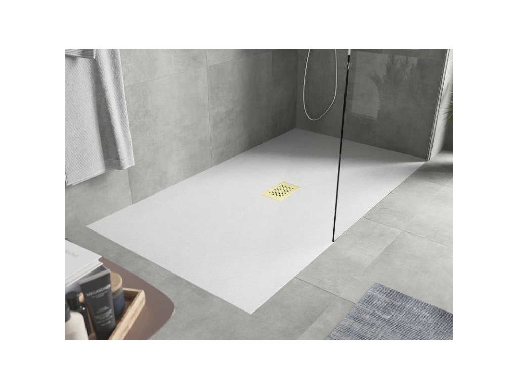 Mexen Hugo je obdĺžniková sprchová vanička s rozmermi 150 x 100 cm vyrobená z odolného materiálu SMC s vysokou odolnosťou proti nárazom. Jej ultratenká konštrukcia s výškou len 2,6 cm je ideálna na inštaláciu do podlahy. Biela farba v kombinácii so zlatou mriežkou dodá každej kúpeľni elegantný nádych. Vďaka možnosti orezania sa sprchová vanička prispôsobí rôznym priestorom. Súčasťou balenia je sifón na jednoduchú inštaláciu.Dodatočné parametre