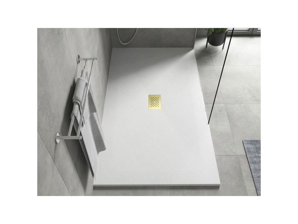 Mexen Hugo je obdĺžniková sprchová vanička s rozmermi 160x100 cm vyrobená z odolného materiálu SMC, ktorá sa vyznačuje kamennou štruktúrou. Vďaka svojmu ultraštíhlemu dizajnu (výška len 2,6 cm) sa dokonale hodí do každej kúpeľne. Inštalácia je možná do podlahy alebo na podlahu a maximálna stabilita je zabezpečená vďaka vysokej odolnosti proti nárazu. Súčasťou súpravy je sifón s horným čistením s priemerom výtoku 90 mm a elegantná zlatá mriežka, ktorá dodáva štýl a jedinečnosť.Dodatočné parametre
