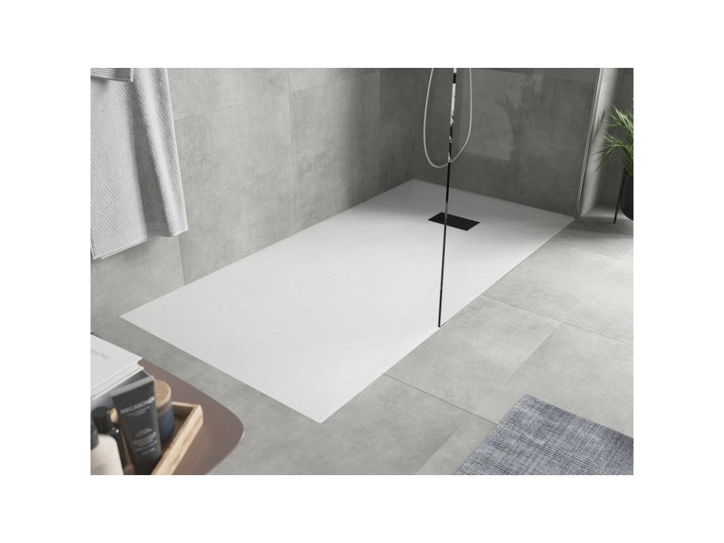 Obdĺžniková sprchová vanička SMC 170 x 90 cm je ideálnym riešením pre moderné kúpeľne. Jej ultratenký dizajn (výška 2,6 cm) a možnosť inštalácie do podlahy alebo na podlahu poskytujú flexibilitu pri usporiadaní. Vybavená sifónom s priemerom 90 mm a odolným materiálom SMC zaručuje odolnosť voči nárazom a deformáciám. Okrem toho mu kamenná štruktúra a čierny rámček dodávajú elegantný vzhľad. Túto sprchovú vaničku je možné aj narezať podľa individuálnych potrieb.Dodatočné parametre
