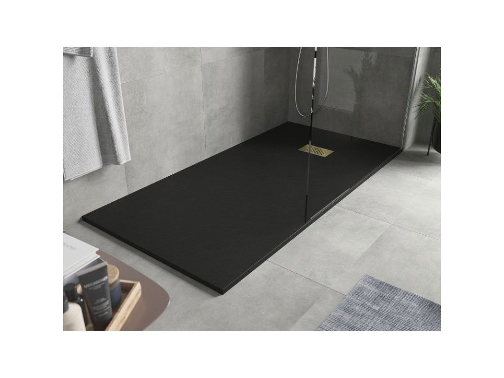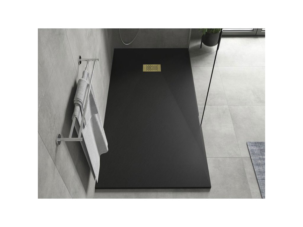 Mexen Hugo obdĺžniková sprchová vanička SMC 170 x 90 cm, čierna, zlatá mriežka - 42709017-G