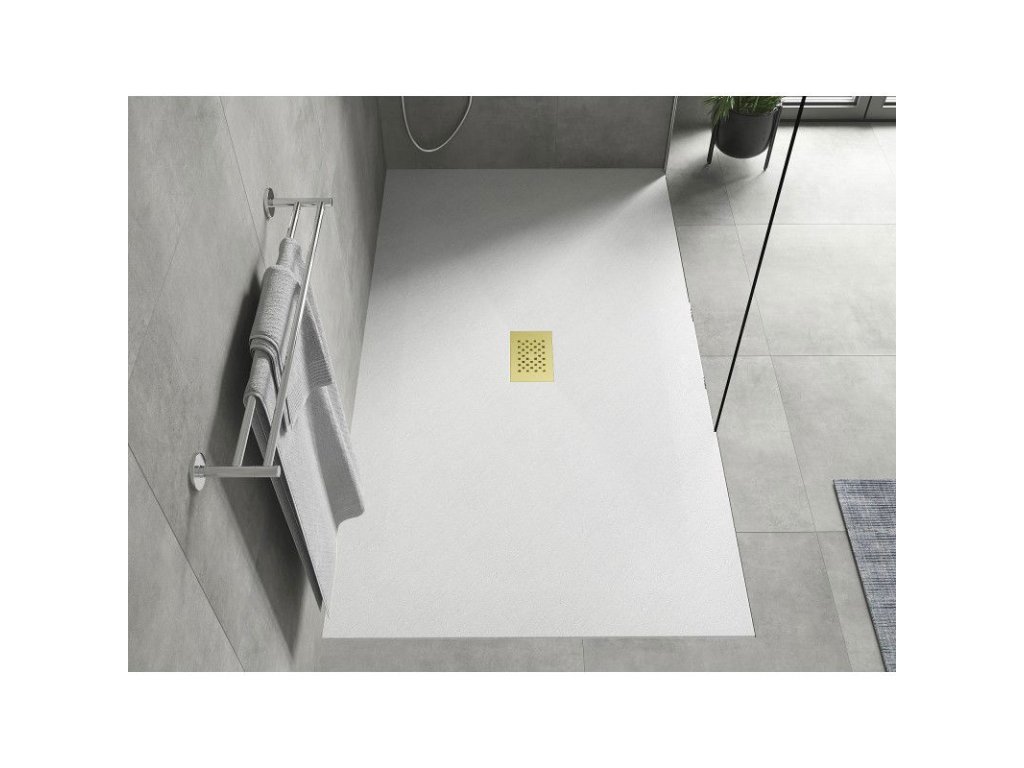 Obdĺžniková sprchová vanička Hugo je dokonalým riešením pre každú kúpeľňu. Je vyrobená z odolného plastu SMC s kamennou štruktúrou a spája eleganciu s funkčnosťou. Vďaka svojej ultratenkej výške 2,6 cm ju možno inštalovať do podlahy aj na podlahu. Ponúka maximálnu stabilitu a odolnosť voči nárazom na dlhodobé používanie. Okrem toho je sprchová vanička vybavená sifónom s horným čistením a jej zlatá mriežka dodá každému interiéru elegantný nádych.Dodatočné parametre