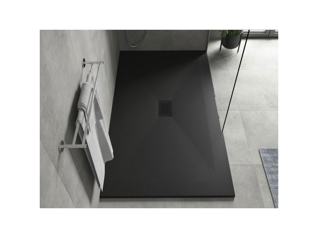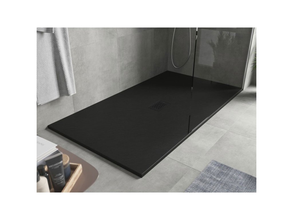Mexen Hugo obdĺžniková sprchová vanička SMC 180 x 100 cm, čierna, čierna mriežka - 42701018-B
